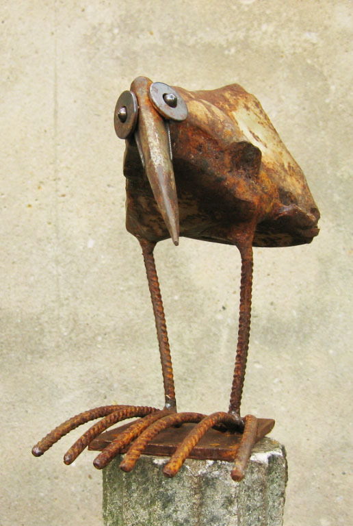 Seltsam geformte Eisenteile, ein antiquiertes Handwerkszeug oder der Rest eines verdrehten T- Trägers es sind die Form- und auch Farbqualitäten, die die Fundstücke für Chris Kircher's Arbeiten interessant machen. In einem offenen Arbeitsprozess offenbaren sie sich in einem neuen, überraschend eigenwilligen, erstaunlich stimmigen und meist tierischen Charakter. Sabine