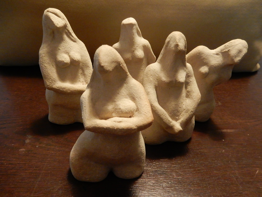 Barbara Ehrmann Barbara Ehrmann nennt ihre Figuren "Runde Frauen". Im wahren Sinne des Wortes . aber auch weil sie Üppigkeit und damit einen Gegenpol zum heutigen Schönheitsideal darstellen will. Außerdem bedeutet "rund" für Barbara Ehrmann auch Ganzheit und Harmonie. Was jedoch nicht gleichzusetzen ist mit Perfektion. Denn die "runden Frauen" sind aus grobkörnigem Ton geformt und entstehen ganz spontan. Die Sichtbarkeit der Körnung, manchmal extrem, ist gewollt. Nach dem winterfesten hohen Brand ist ihre Erscheinungsform erdig, archaisch und robust.