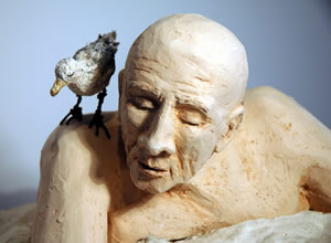 Roth Figürliches aus Beton und Ton mit Gefiedertem aus Pappmachè