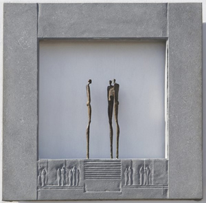treten fragile, bronzene Figuren in Beziehung miteinander