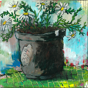 Die Malerin und Illustratorin Friederike Dammermann findet ihre Themen direkt dort, wo sie lebt. Mit spielerischer Leichtigkeit gelingt es ihr, farbige Flächen und kraftvolle Linien miteinander zu kombinieren und die Schönheit des Alltäglichen ausdrucksstark und frei in ihren Bildern festzuhalten. Sie arbeitet mit Acryl und Farbstiften und verwendet collageartig verschiedenste gemusterte Papiere und Stoffschnipsel. Ihre Bilder wirken durch die zugleich kraftvolle und verspielte Darstellungsweise vielschichtig und authentisch. Eine alte Gießkanne weckt beim Betrachter unweigerlich Erinnerungen an den letzten Frühling: die feuchte Erde, die ersten zarten Knospen und die frische Luft .. während gestapelte Tassen und charaktervolle Teekannen einen gemütlichen Nachmittag zu versprechen scheinen.