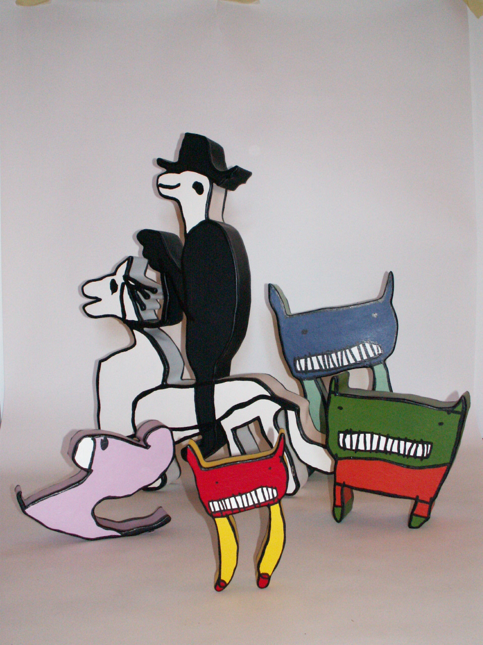 Plastiken aus Holzpappe lassen deutlich die Graffiti - Vergangenheit
