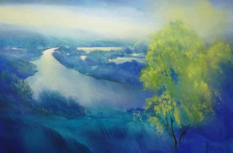 "Ein Bild sollte so aussehen, als hätte es sich selbst gemalt". Emil Nolde Die Bildflächen der Limburger Malerin gliedern sich durch die Strukturen, die ihre fließenden Farben hervorbringen. Mit dem Auftragen immer neuer Schichten bauen sich vielfältige Farbklänge auf und im Gleichgewicht zwischen Licht und Dunkelheit entstehen Landschaften, Wolkenformationen, Wasseroberflächen.