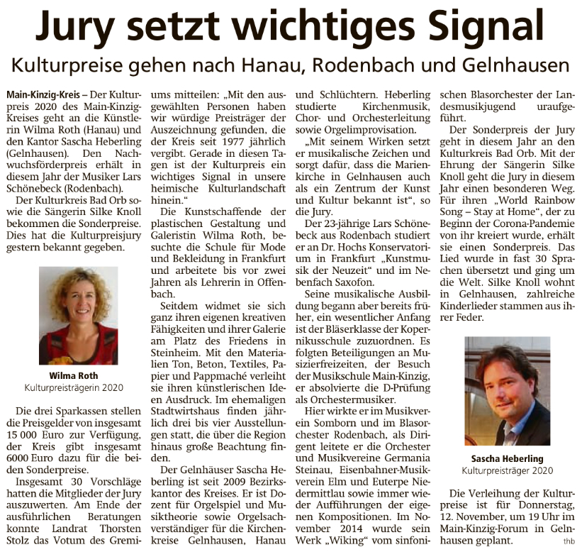 Kulturpreis 2020 an Wilma Roth